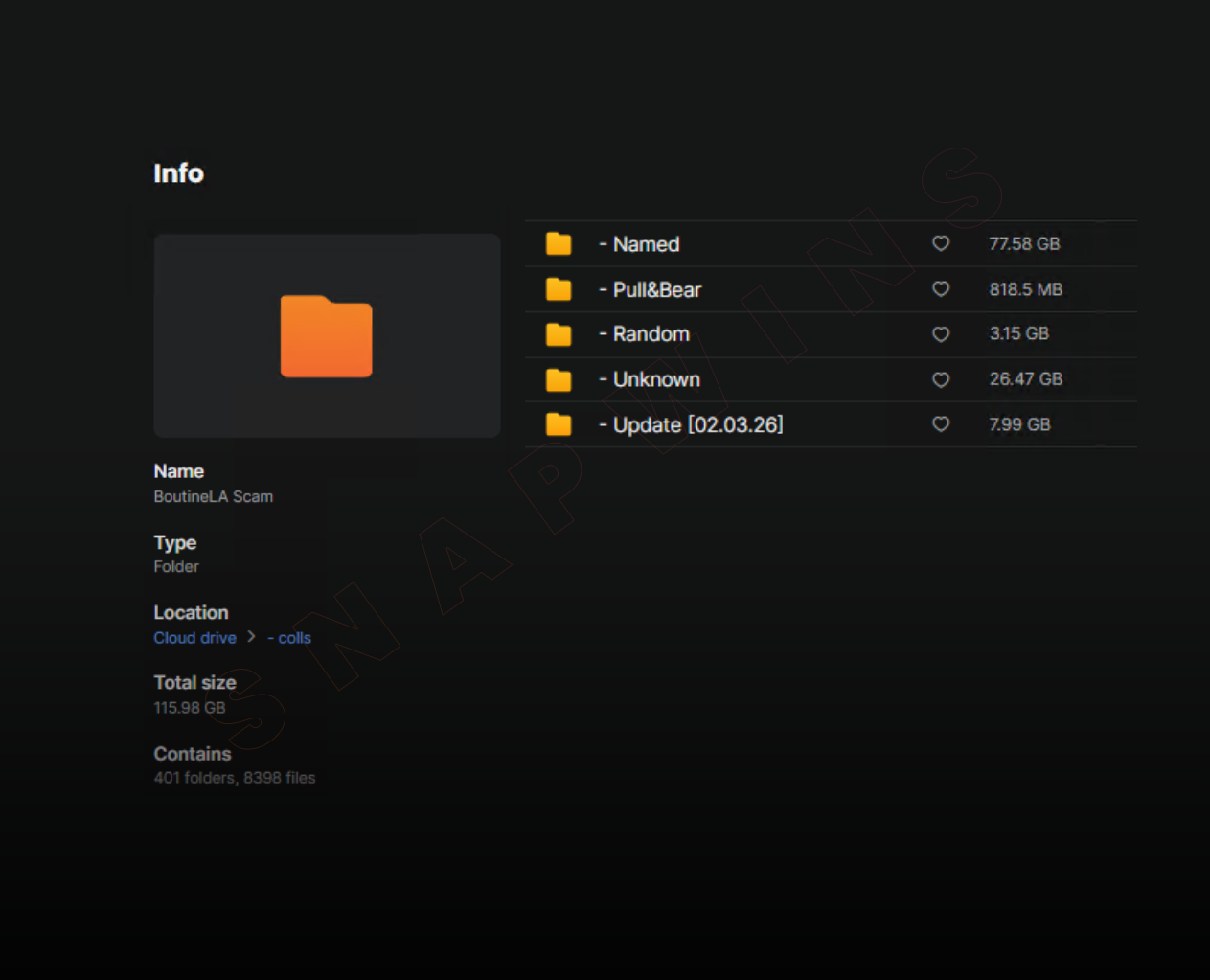 Text information: 50 $, contain 115 GB, 8.3k files, about 400+ folders.