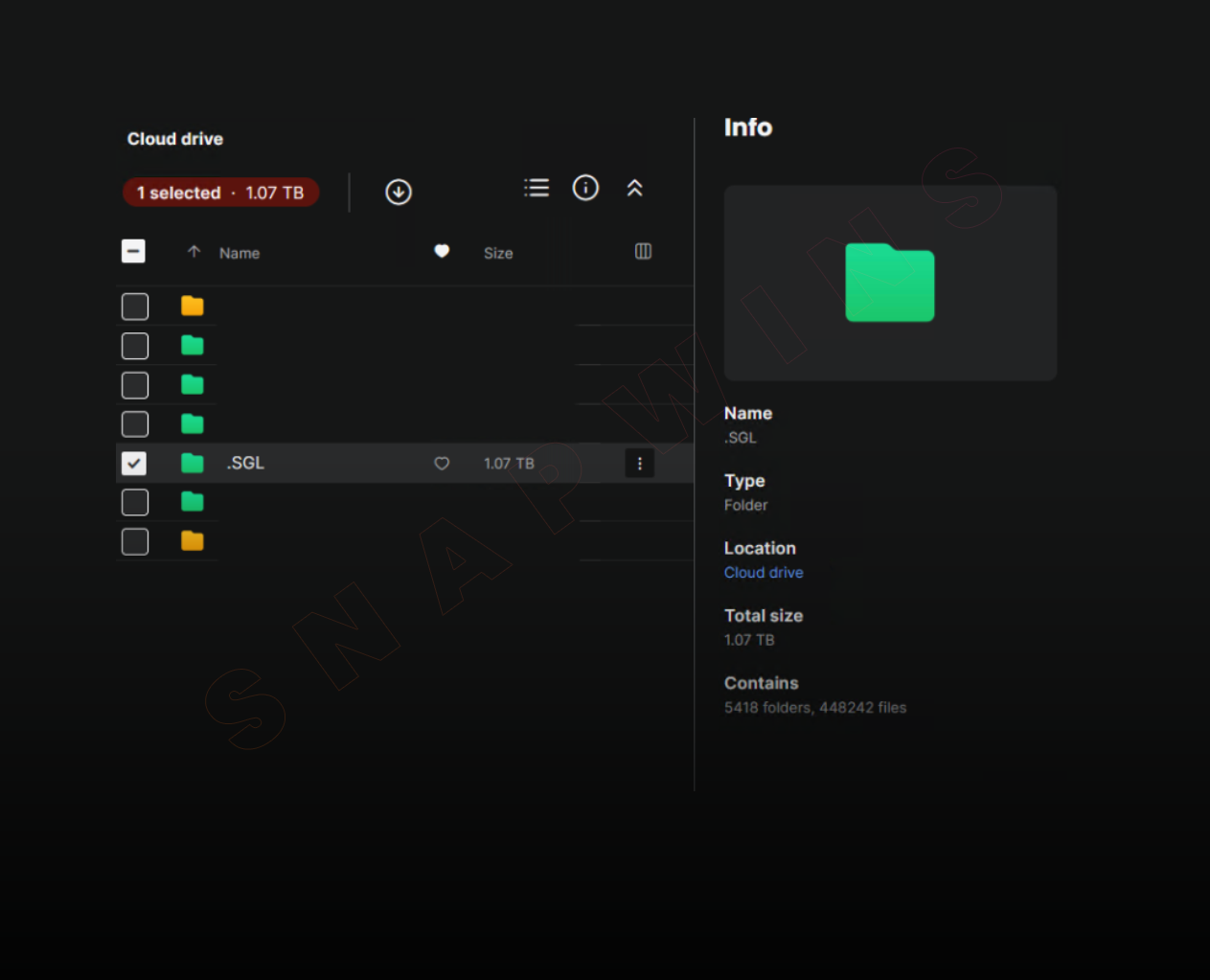 Text information: 100 $, contain 1.07 TB, 448k files, about 5418 folders.